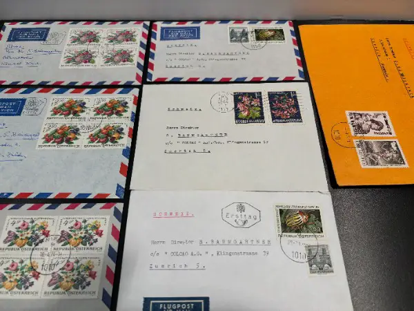 Grosses XL SET alte BRIEFMARKEN SONDERMARKEN ERSTTAG COUVERT LUFTPOST BRIEFPOST aus der Republik ÖSTERREICH um die 1967 - 1974 er mit Sujet Flora Fauna Birne Blumen Käfer Akalei Türkenbund Kultur Internationale Gartenschau Früchte Beeren Vegetation