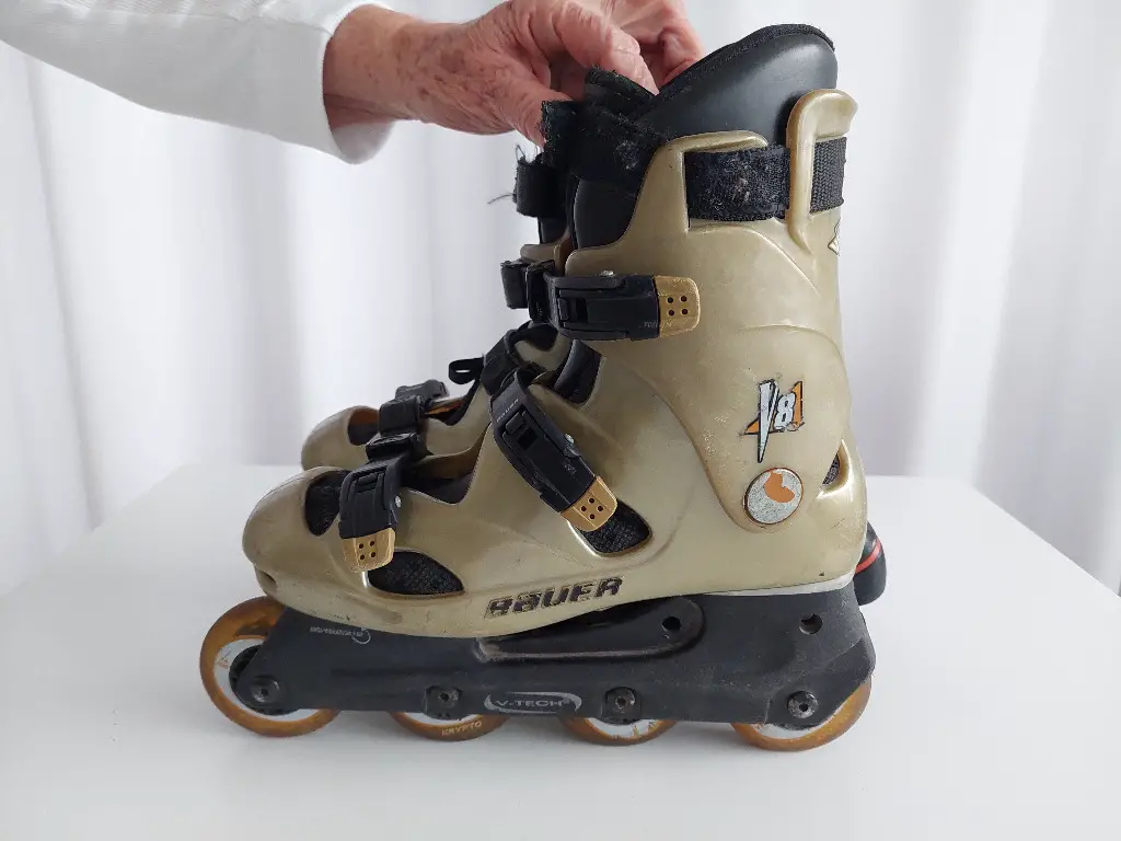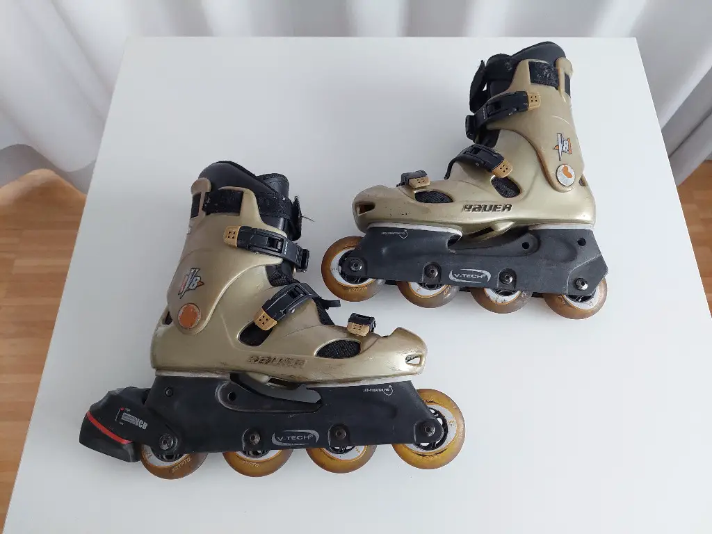 Dies sind Bauer V-Tech Inline-Skates, die für Inline-