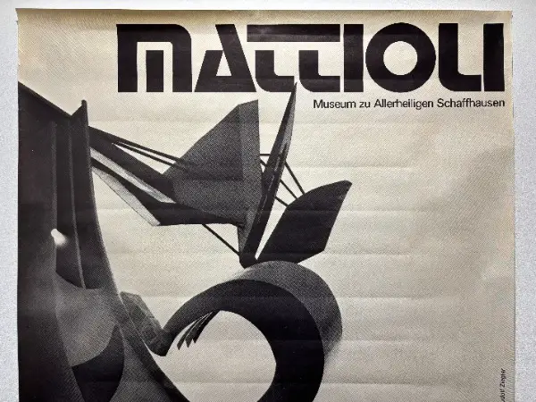 Ein tolles abstraktes dekoratives wie edles lebhaftes ORIGINAL XXL PLAKAT DRUCK vom bekannten Grafiker Künstler Designer MATTIOLI // für Werbung Ausstellung Opening Gallerie von 1975 im Musuem zur Allerheiligen Schaffhausen // PLAKAT dem Alter entsprechend MIT DIV. LAGERSPUREN AN DEN RÄNDERN DAHER STARK REDUZIERTER PREIS! // PLAKAT IST NEU UND WURDE NIE AUFGEHÄNGT! // aus einem wertigen