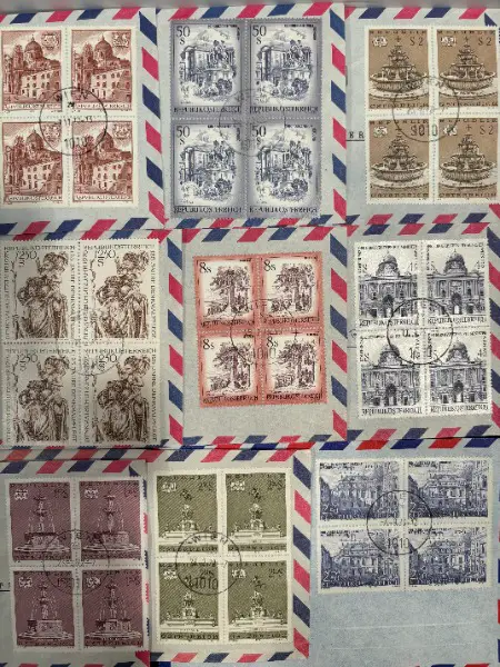 Grosses XL SET alte 4er BRIEFMARKEN SONDERMARKEN ERSTTAG COUVERT LUFTPOST aus der Republik ÖSTERREICH um die 1972 - 1976 er mit Sujet