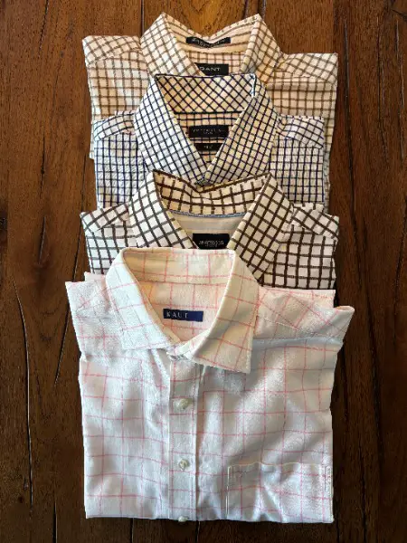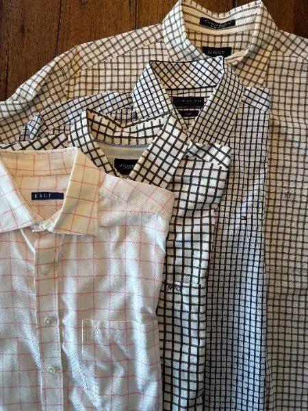 TOMY HILFIGER MCGREGOR KAUF // Farbe ist weiss mit dunkelbraunem karo McGREGOR Gr. XL (41-42? ) RegularFit, weiss mit zartem rosa karo KAUF Gr. 41 RegularFit, weiss mit ganz feinen weissen hellbraunen Streifen GANT Gr. L (41-42? ) aber sehr gross geschnitten // alle für normale Statur und ca. Körpergrösse 185cm - 195cm, alle sehr feine