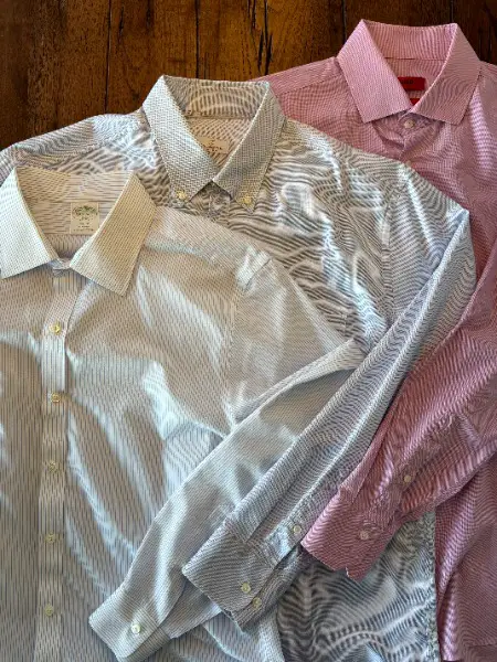 HUGO BOSS BROOKBROTHERS // Farbe ist rosa violett mit ganz feinem karo Muster HUGO BOSS Gr. 41 RegularFit, ganz feines karo Muster weiss hellblau EINHORN Gr. 42 RegularFit, weiss mit feinen hellblauen Streifen BROOKBROTHERS Gr. 16 1/2 (ca. XL - Gr. 41 - 42 // für normale Statur und ca. Körpergrösse 185cm - 195cm, alle sehr feine