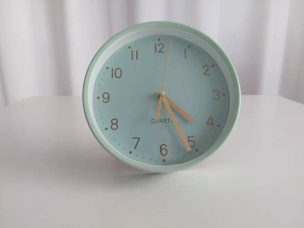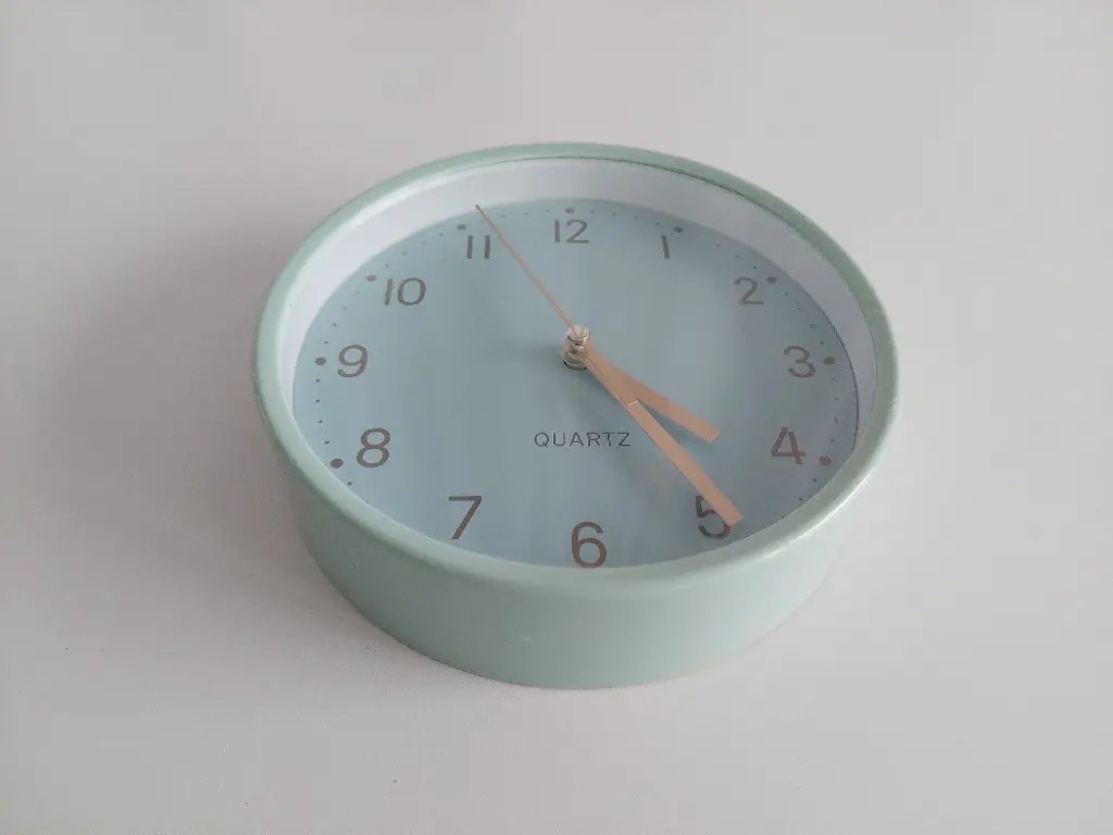 Geräuscharme Uhr ohne Ticken, batteriebetrieben, mit schleichendem Sekundenzeiger, zum Hängen und Stellen, Ø 16 cm rund, Mint / Gold