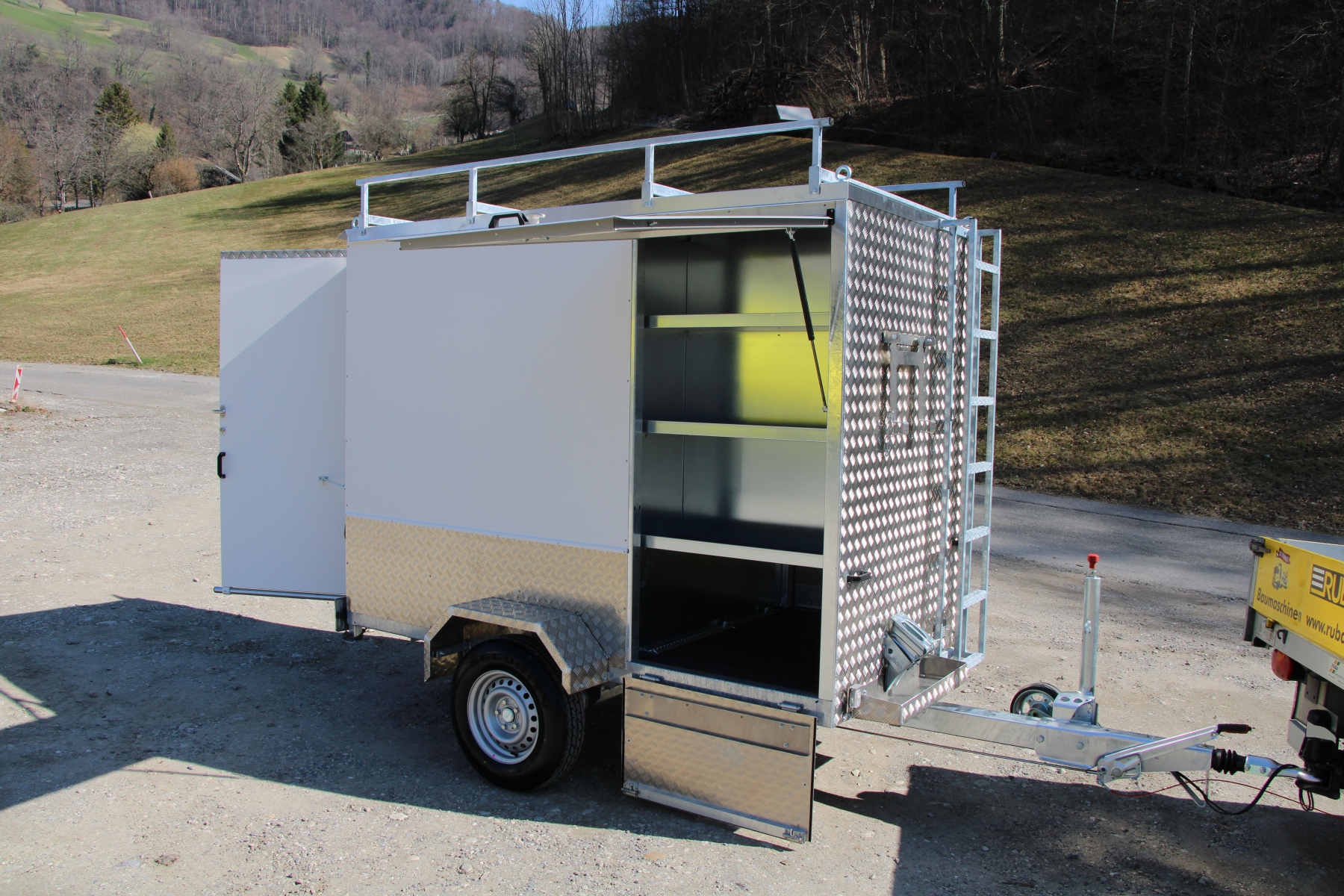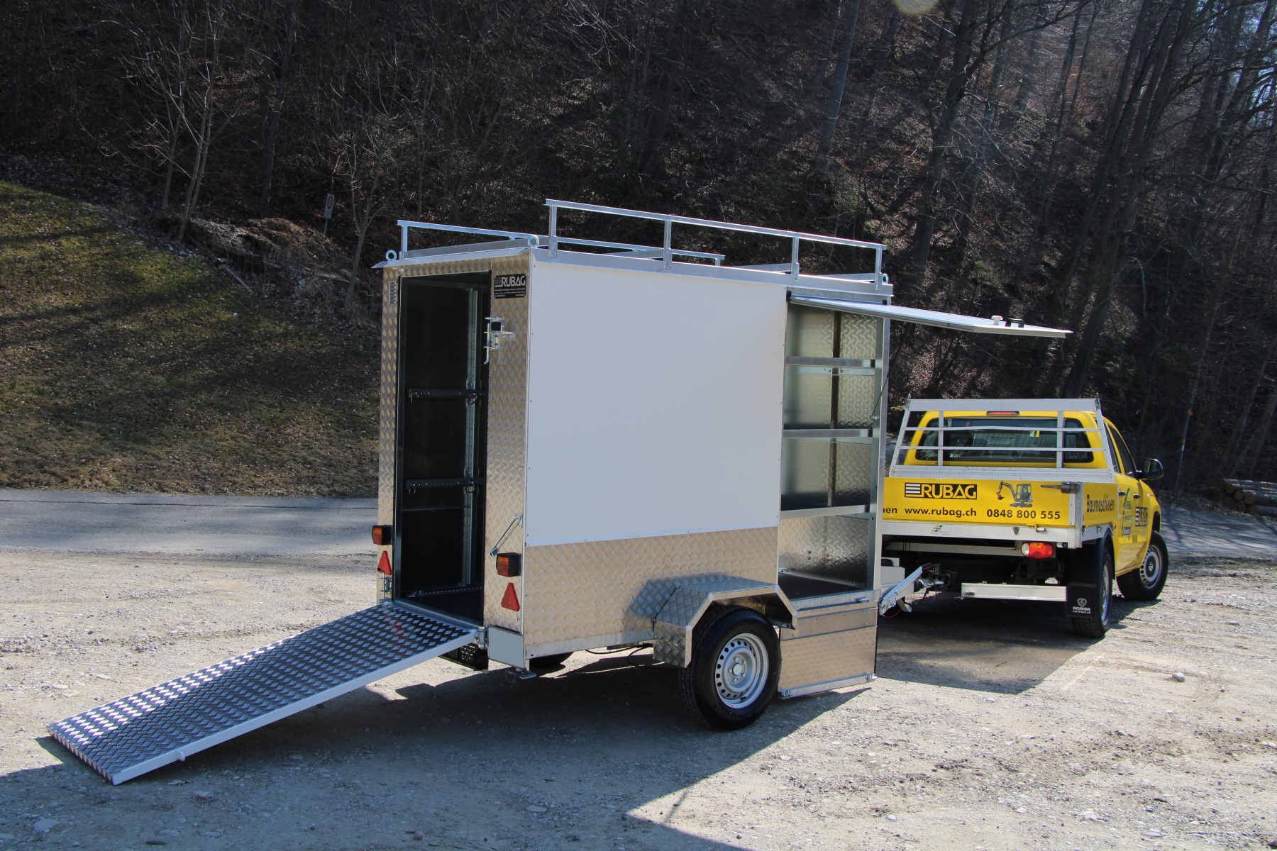 Verkaufsargument: Neuwertiger Werkzeuganhänger. Der RUBAG Werkzeuganhänger REBU 260 ist für eine Geschwindigkeit von 100 km/h zugelassen.