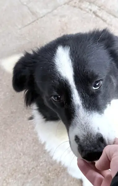 Collie-Mix, also einen Hütehund. Typisch für einen