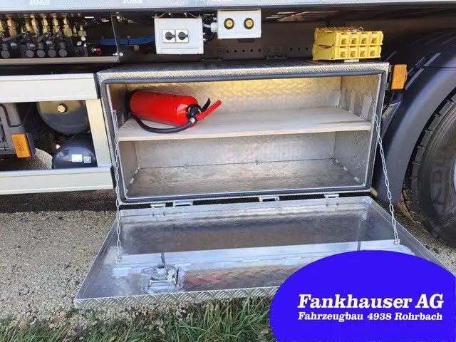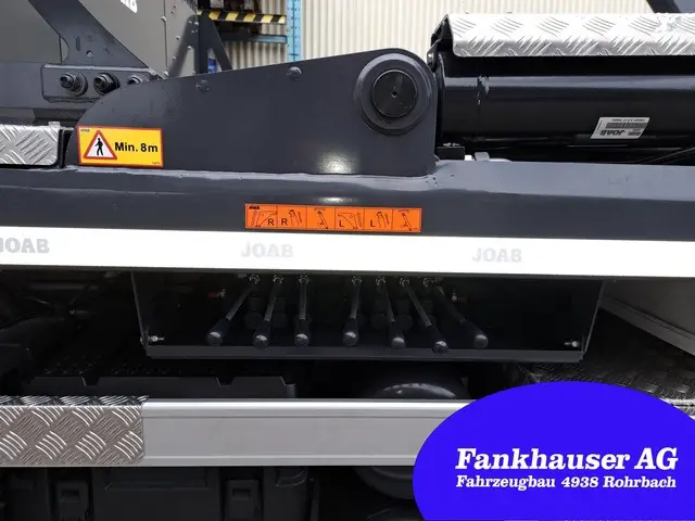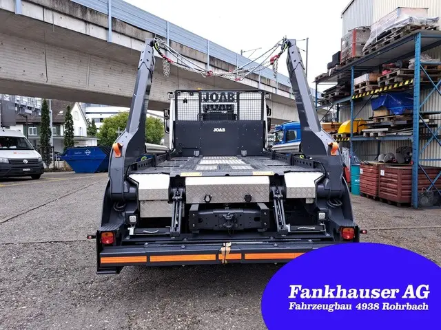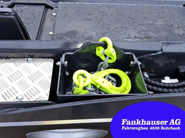 Bemerkung: Kipphakenverriegelung, 4x hydraulische Behälterverriegelung, Unterfahrschutz 600mm ausfahrbar, verstellbare Muldenanschläge, Ketten zu Muldenhochkippung, Funkfernsteuerung, Teleskoparme einzeln gesteuert, Schaufel und Besenhalter, 4x Arbeitslichter, grosse