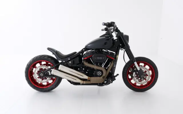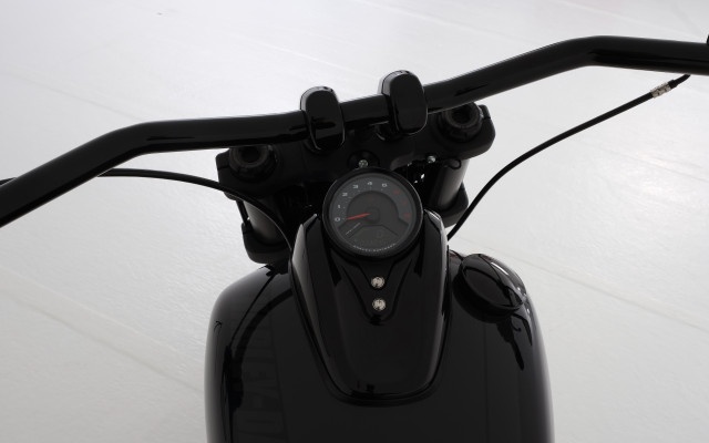 Felgen setzen ein klares Statement und unterstreichen den aggressiven Racing-Look, der diese Fat Bob von der Masse abhebt.