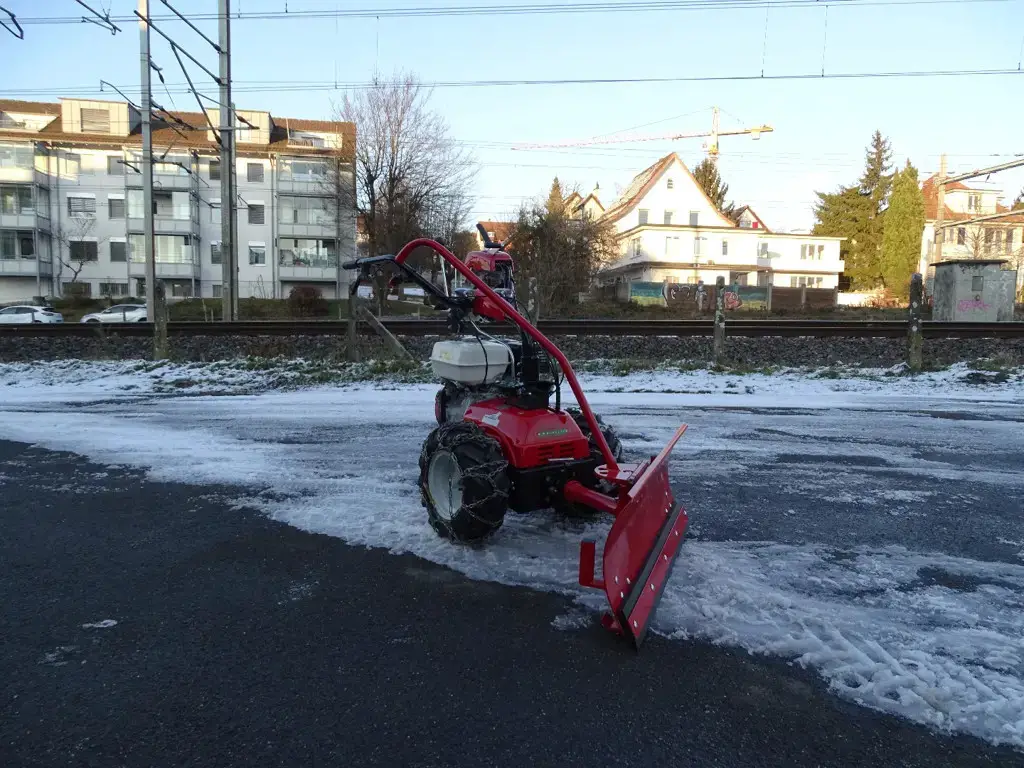 Zuverlässiger Einachser GH 9 mit Honda GX 200 Motor und komfortablem Hydrostat-Antrieb. Ideal für den professionellen Einsatz im Winter- und Unterhaltsdienst. Dank 1 m