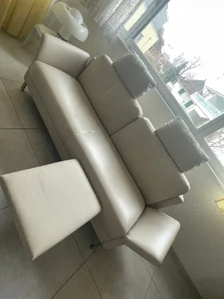 Das Sofa bietet 3 Sitzplätze und ist neuwertig, da es kaum Gebrauchsspuren aufweist (gemäss Beschreibung) .