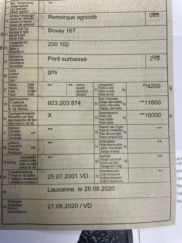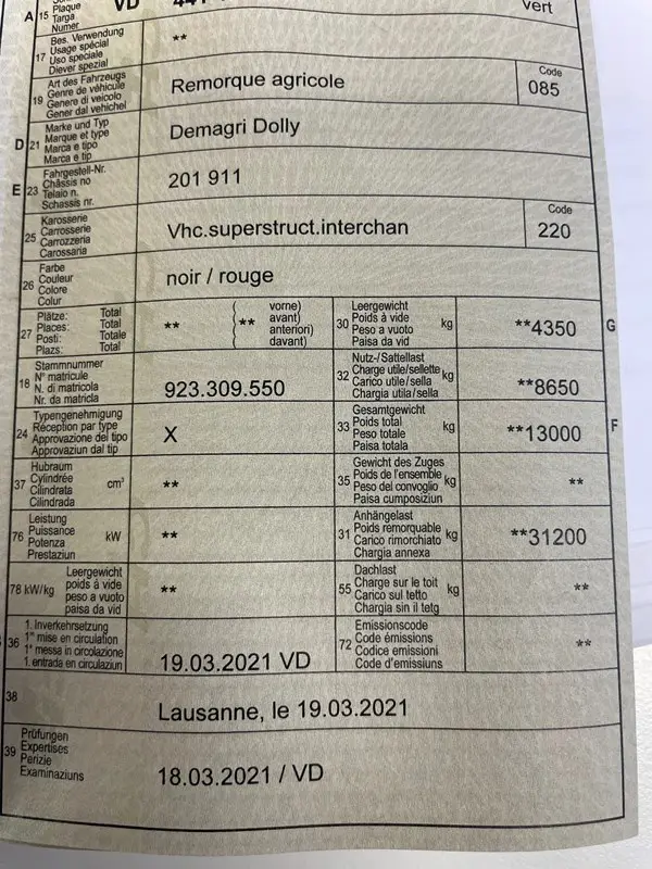 Dolly expertisé 40km/h, frein pneumatique, K80, centrale hydraulique à pdf.