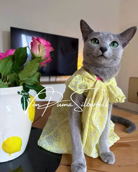 - beide Elternteile sind reinrassige Russisch Blau Katzen und besitzen einen Mehrgenerationenstammbaum