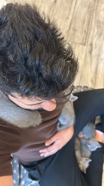 Sie werden mit viel Liebe, Kuscheln, Zuneigung und spielend aufgezogen (auch von unseren Kindern) . Wir verbringen viel Zeit mit ihnen. Es ist, wie als hätte man selbst ein Baby bekommen.