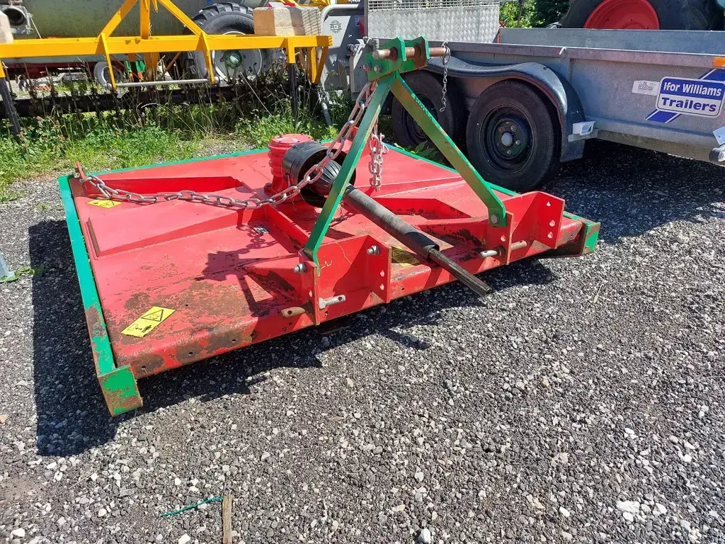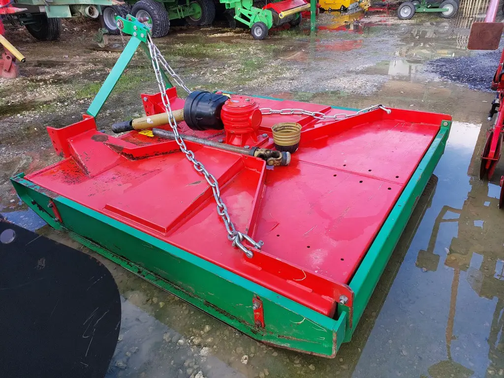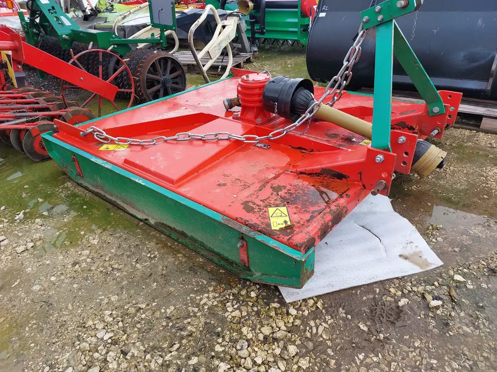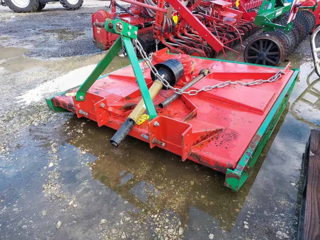 Equipement: Attelage 3 points déportable de 25 cm. Modèle 1 rotor vertical. Largeur de coupe 1,74 mètres, 3 couteaux. Patins réglables, hauteur de coupe de 40-140 mm.