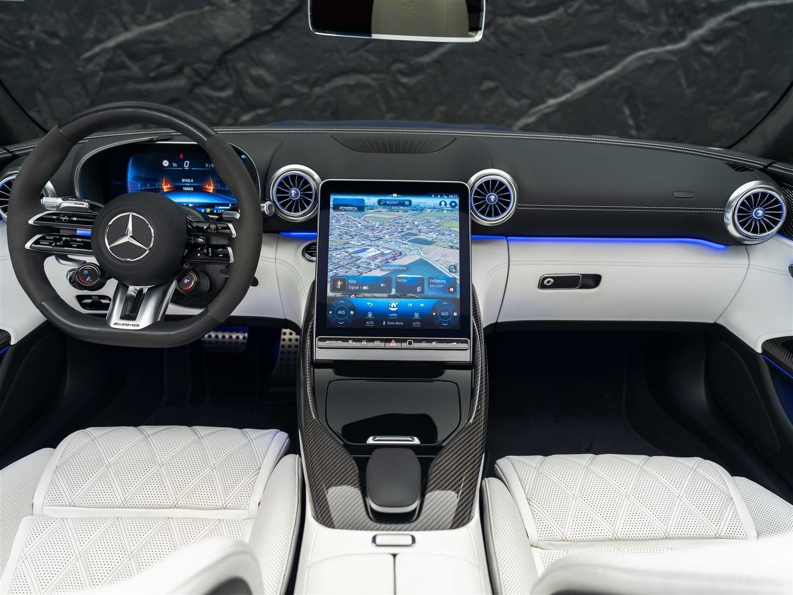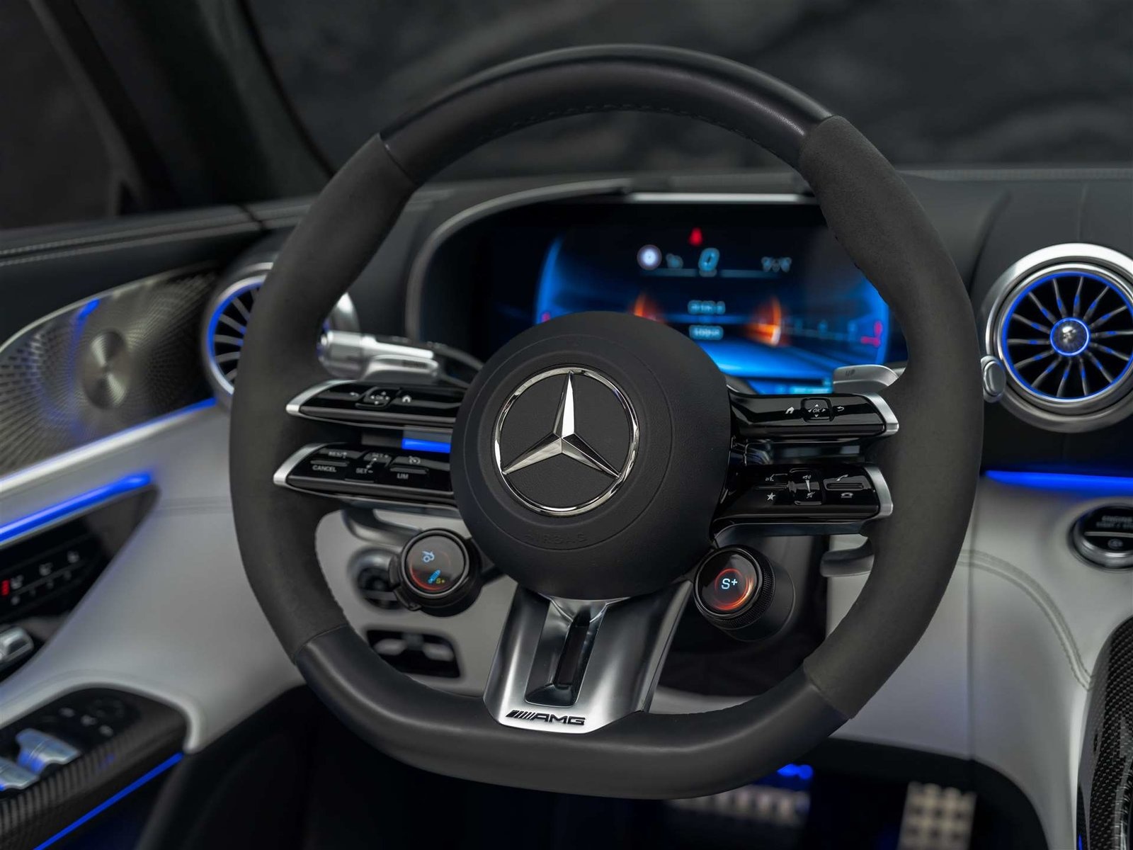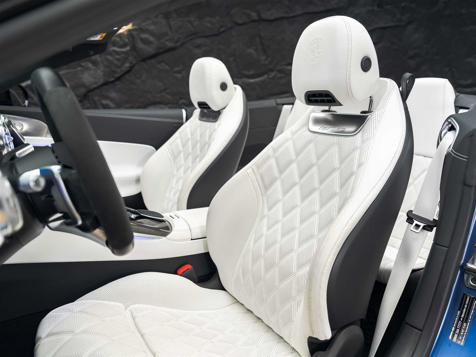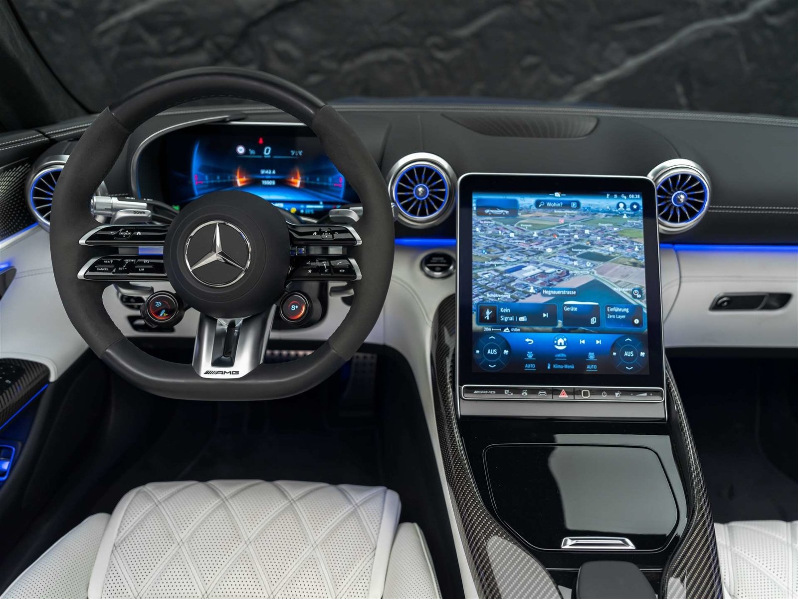 Räder: 21" AMG Schmiederäder im Kreuzspeichen-Design, Dekor: AMG Zierelemente Carbon, Paket: AMG Carbon Paket Exterieur - Frontsplitter Carbon - Flics Carbon an den Lufteinlässen der vorderen Kotflügel - Frontsplitter Carbon - Zierelement am vorderen Kotflügel in Hochglanzschwarz - Aussenspiegelgehäuse Carbon - Seitenschwellerverkleidung mit Zierleiste Carbon - Zierelement an Heckschürze in Hochglanzschwarz - Diffusor Carbon - Auspuffrohre Hochglan, Getönte Heckleuchten und Scheinwerfer, AMG Indoor Car Cover, Lenkrad: AMG Performance Lenkrad in Leder Nappa/Microfaser DINAMICA,
