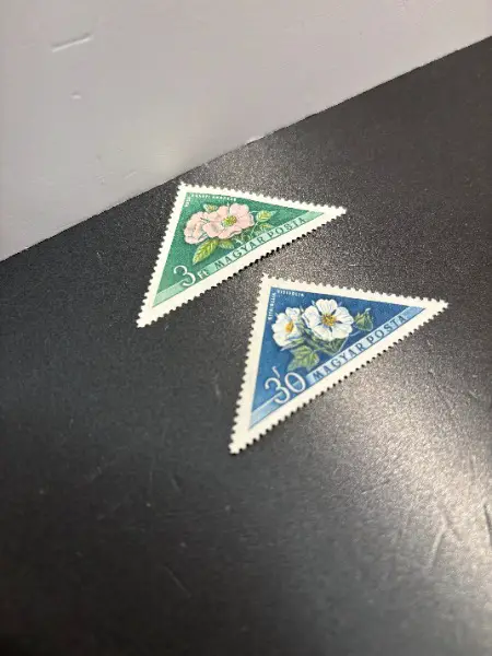 alte 2x UNGELAUFENE UNGESTEMPELTE BRIEFMARKEN SONDERMARKEN aus UNGARN um die 1940 - 1960 er mit Sujet Blume Pflanze Blüte Erdbeere etc. // für Sammler von Sondermarken Kalter Krieg Ostblock Warschauer Pakt UDSSR Sowjetunion Philatelie Briefmarken Markenbogen Weltpost Sonderdruck Zeitzeugen Naturkunde Biologie Sonderbrief historischen Dokumente Wertpapier Album Couvert Druck Sondermarken PTT Post Münzen Korrespondenz Geld Banknoten Kulturgeschichte Literatur Kultur etc. // dem Alter entsprechend in gutem Zustand aber leichte Lagerspuren // aus gepflegtem NICHTRAUCHERHAUSHALT von der zürcher Goldküste // Grösse einer Marke über alles ca.: 6cm x H 3cm