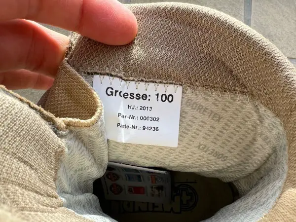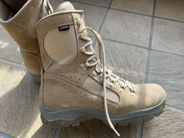 Hersteller Meindl, Grösse 100 (entspricht etwa Schuhgrösse 45.5 / 46) . Schuhe werden im Militär bei Auslandeinsatz getragen (u.a. Swisscoy KFOR) , sind aber sicher auch gut als Wanderschuhe geeignet. Versand an Feldpostadresse erfolgt Gratis!