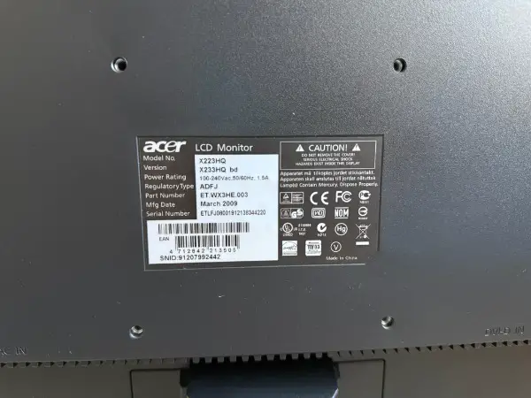 gebrauchter funktionsfähiger Bildschirm der Marke Acer, Modellbezeichnung X223HQ.
