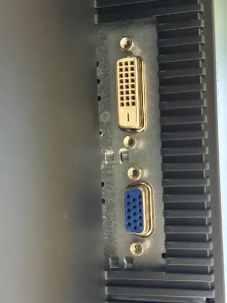 Anschlusskabel für DVI-D, VGA sowie Strom sind vorhanden.