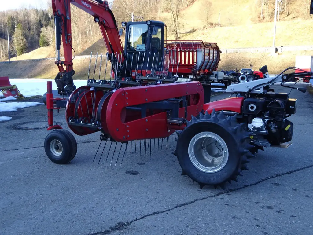 Schöner Bandheuer mit Schwenkrädern zu Motormäher