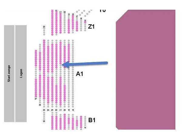 Sitzplatz Reihe 21 Platz 20+21 gemäss Saal Plan.
