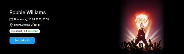 4x Tickets Robbie Williams Zürich Donnerstag, 10.09.2026
