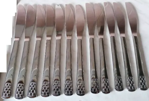 12 Messer, Edelstahl, mit Muster, Top Zustand, Vintage