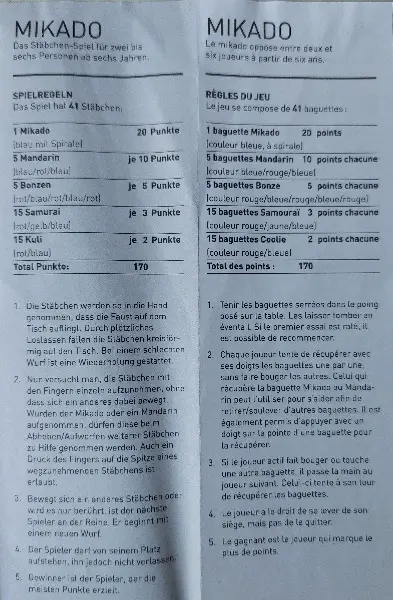 Neues Mikado-Spiel, ideal für lange Winterabende! Fördert die Konzentration und Feinmotorik. Das klassische Geschicklichkeitsspiel für die ganze Familie. Enthält 41 Mikado-Stäbchen und Spielanleitung. Ein tolles Geschenk für Kinder und Erwachsene! Viel Spass beim Spielen! Jetzt bieten und gewinnen! Dieses Spiel ist nagelneu und unbespielt. Sichern Sie sich dieses unterhaltsame Spiel! Der Preis gilt für 1 Stück, habe 2 davon.