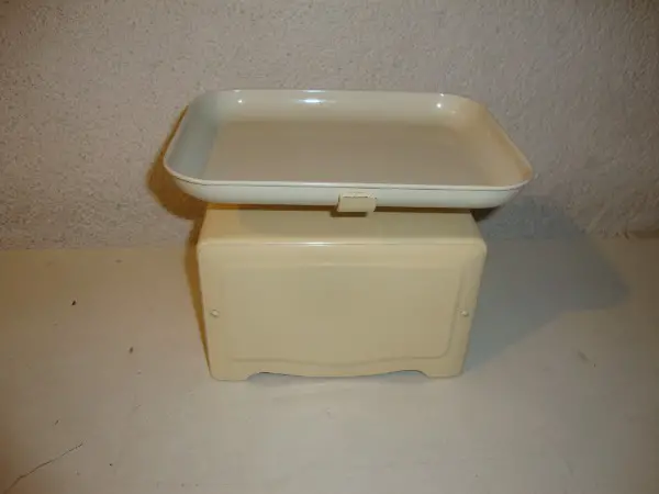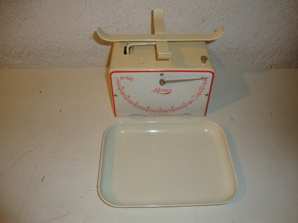Verkaufe eine alte seltene gebrauchte Küchenwaage von Lyssex aus Metall funktionstüchtig.