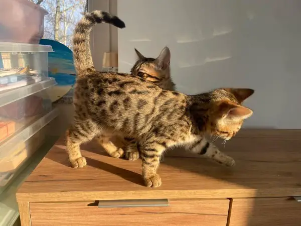Unsere süsse Bibi und der hübsche Bagheera haben vor drei Monaten wunderschöne reinrassige Kitten auf die Welt gebracht. Die Kitten sind bereit für ein neues und liebevolles Zuhause. Sie zeigen rassenspezifische hübsche Rosetten und sind absolut goldig. Sie sind verspielt, sozialisiert, stubenrein, an Trockennahrung und zum Teil auch Nassnahrung gewöhnt und an Lärm (wir leben am Bahnhof) sowie an Menschen gewöhnt. Die Kitten sind geimpft, entwurmt, absolut gesund und kräftig. Es fehlt ihnen an nichts. Sie haben einen äusserst neugierigen Charakter. Wir wünschen uns nur das Beste für die kleinen und geben Sie natürlich nur in ein tolles und glückliches neues Zuhause.