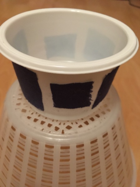 Deko plastik Becher mit blauem Stoff im jeansstyle, für Pflanzen gemäss Bild.