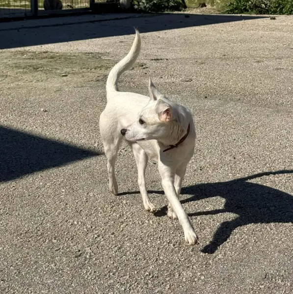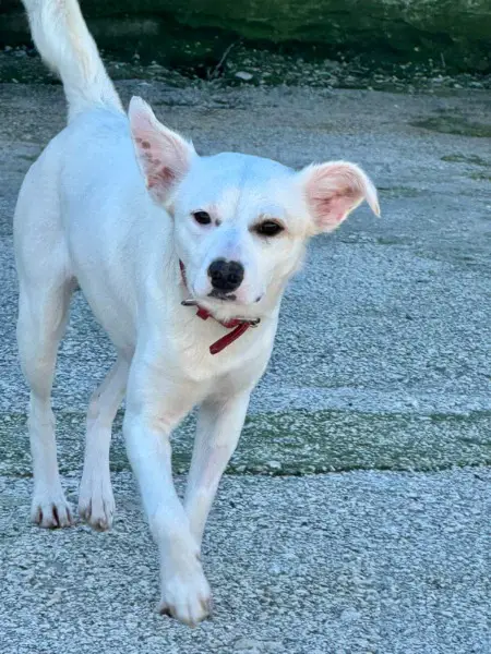 Die schneeweisse Hündin Bianca wurde in Nähe einer stark befahrenen Strasse in Griechenland gefunden. Sie wirkte verloren und mit der Situation überfordert und kam daraufhin in unser Kooperationstierheim. So hat sie nun die Chance ein tolles Zuhause zu finden. Woher die Hündin ursprünglich kommt und was sie zuvor erlebt hat, können wir leider nicht sagen. Ihre Beschreibung basiert auf ihrem Verhalten im Tierheim.