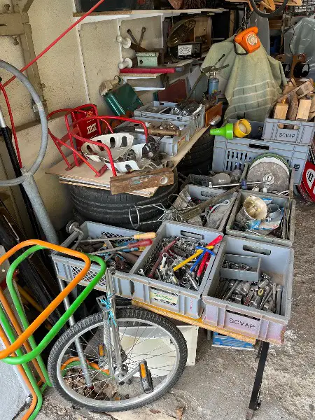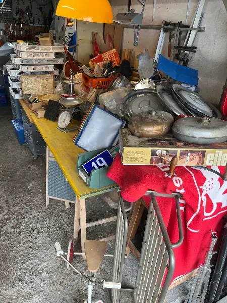 Garagenflohmarkt mit verschiedenen Gegenständen in Oberwinterthur