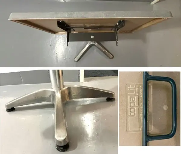 Tischplatte: Topalit-Werzalit 70 x 70 cm; Stärke: 30-35 mm