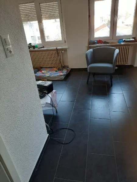 Boden in der Wohnung sehr schöne schwarze Plättli