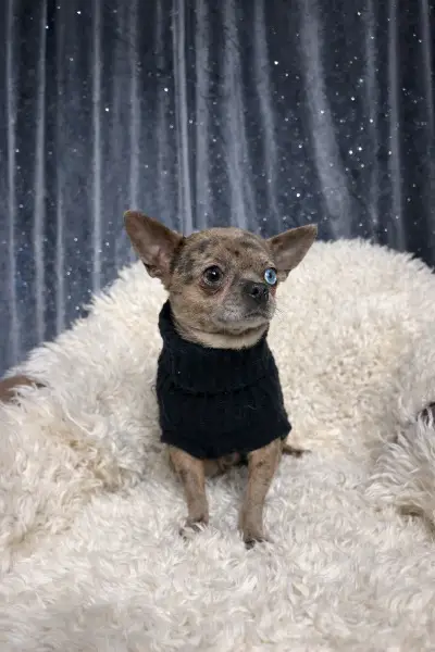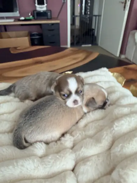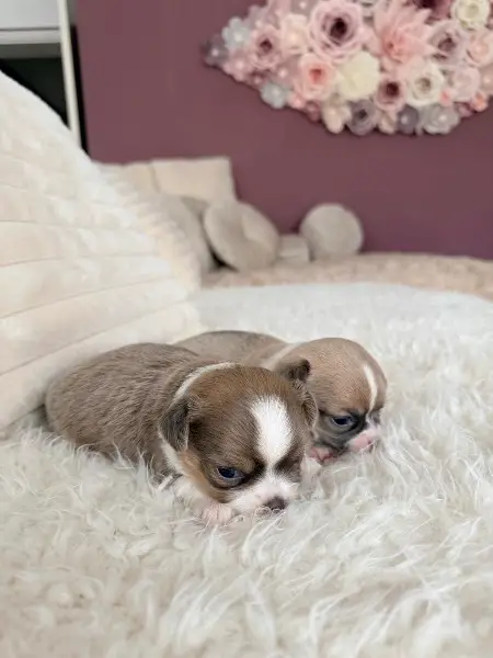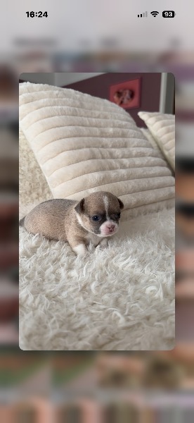 Chihuahua, Welpe Rüde in seltener Farbe Blue Fawn geboren am 1. Februar 2026 sucht ab Mitte oder Ende April, sein Traum Schloss auf Lebenszeit.