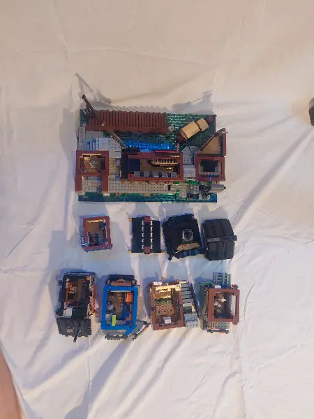 Sehr detailreiches Modell mit mehreren Gebäuden, Hafenbereich und vielen Bauelementen.