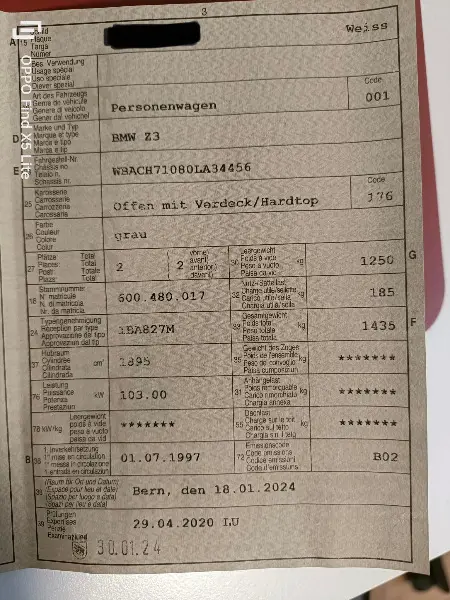 Biete ein gepflegter BMW Z3 Hardtop/Cabrio, Jahrgang 1997 (1. Inverkehrssetzung 01.07.1997) mit 103 KW (140 PS) in Farbe grau. Kilometerstand knapp 140'000. Wird demnächst geprüft. Verkauf somit ab MFK. Preisvorstellung CHF 12'000.00. Bei Interesse oder für weitere Auskünfte bitte eine Nachricht (Telefon / SMS) danke.