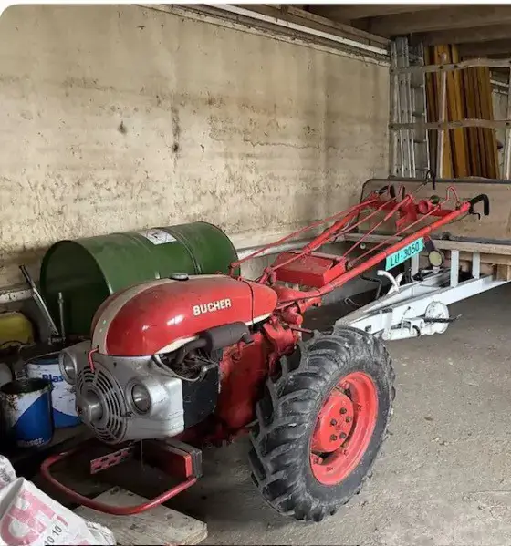 Bucher KT10 mit Treibachs Anhänger, neue Holzbrücke, läuft, war eingelöst bis Ende Februar 2026. Die letzten Jahre war der Einachser regelmässig im Einsatz. Baujahr 1958.