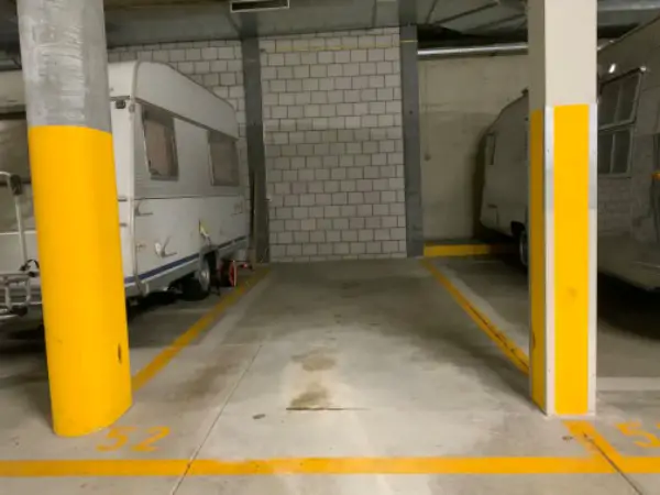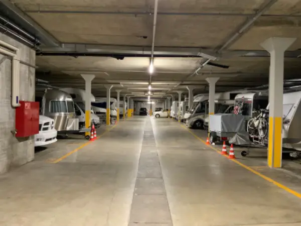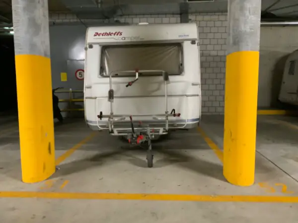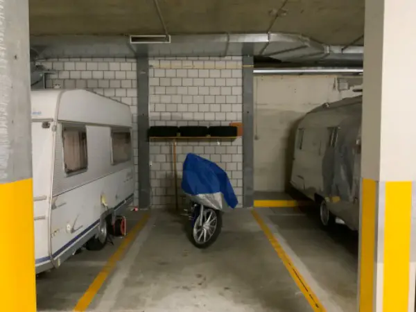 Masse Parkplatz: Breite 2,20 m zwischen den 2 Stützen (2,35 m dahinter) , Länge 6,50 m, Höhe 3,78 m.