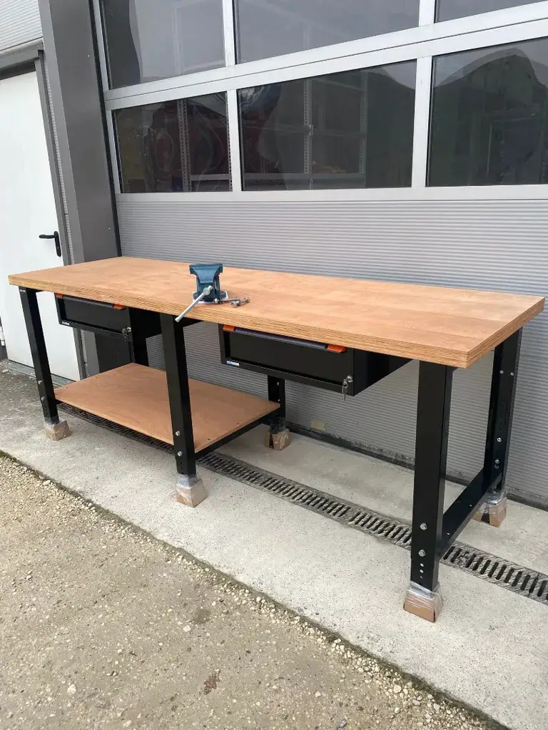 Schraubstock (Backenbreite 125 mm) . Mit 2 Thurmetall Schubladen, abschliessbar - je 2