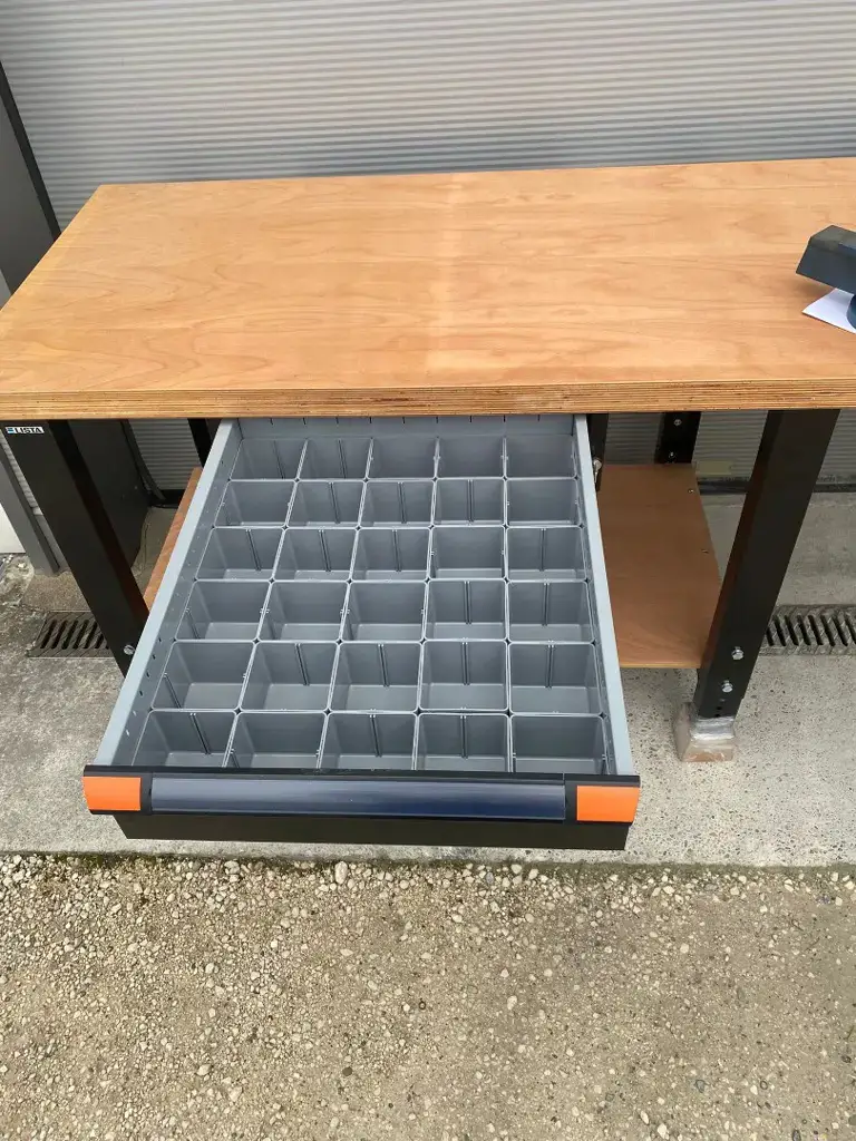Schlüssel vorhanden. Eine Schublade ist gefüllt mit Schubladeneinsätzen.