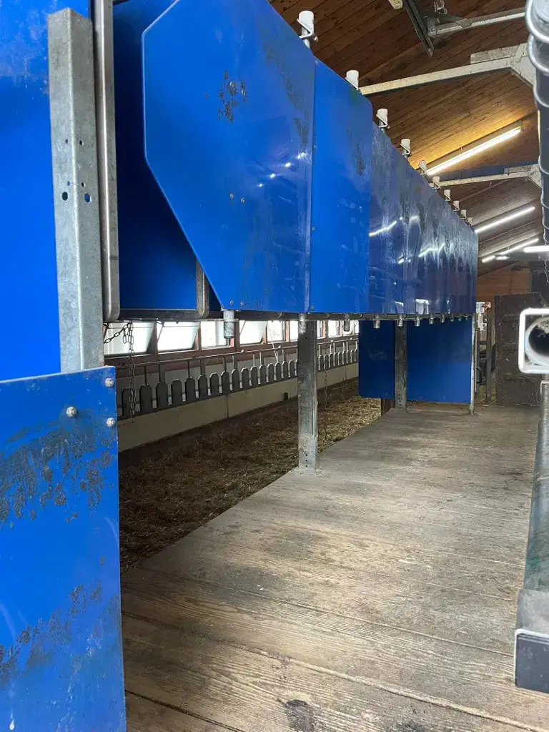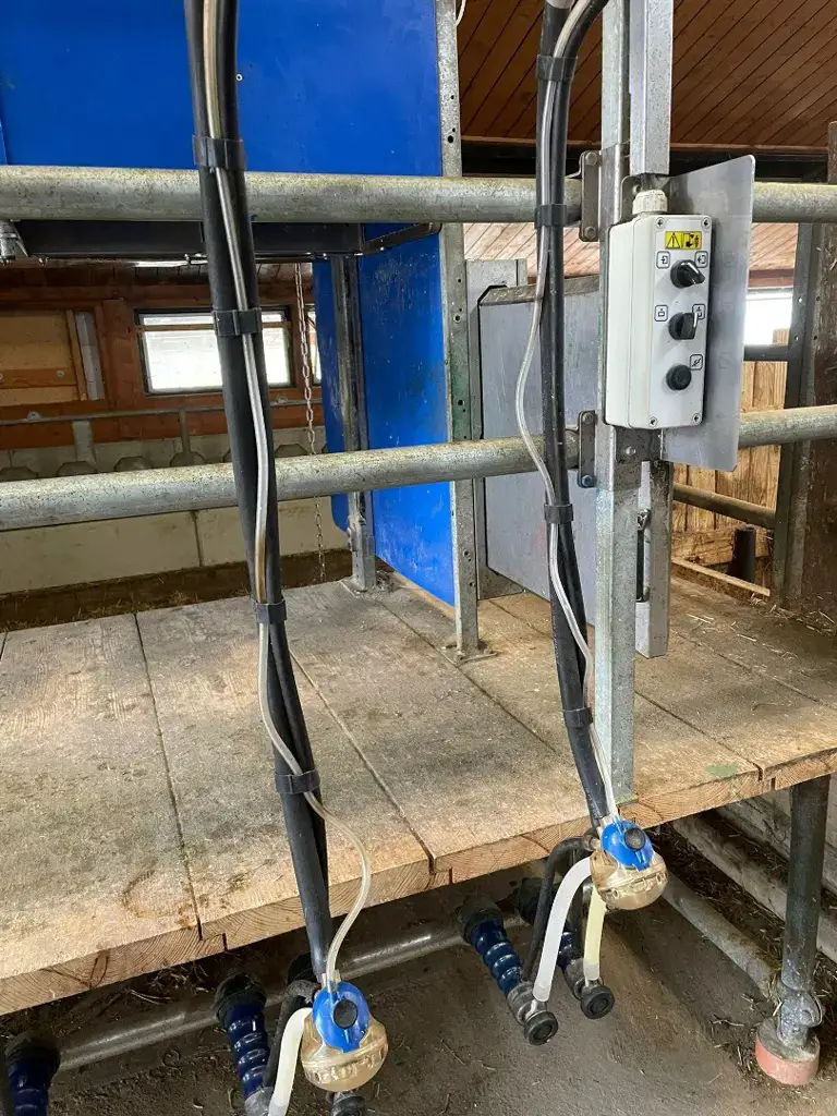Melkstand mit pneumatischem Schnellaustrieb und automatischer Fütterung