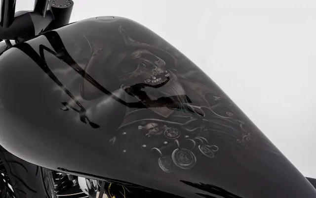 Dieses Bike lebt von seinen Details: unzählige Stunden Handarbeit, kreative Lösungen und echte Custom-Leidenschaft sind in diesen Umbau geflossen. Ein Motorrad für Menschen, die nicht einfach nur fahren wollen – sondern ein Statement setzen.