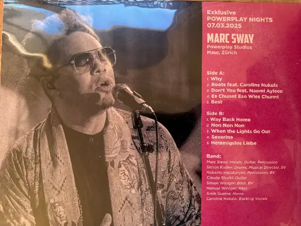 Biete eine handsignierte LP Schallplatte aus Vinyl von Marc Sway "Powerplay Nights - Live to Tape Series". Ein "must have" für jeden Fan oder Sammler! Die Platte ist neu, originalverpackt und wurde stets sorgfältig gelagert. Perfekt für als besonderes Geschenk. Kann abgeholt oder auch versichert verschickt (plus Versandkosten) werden. Preis CHF 50.00 (VB) . Bezahlung mit Twint möglich. Bei Interesse bitte eine Nachricht (PN) danke.