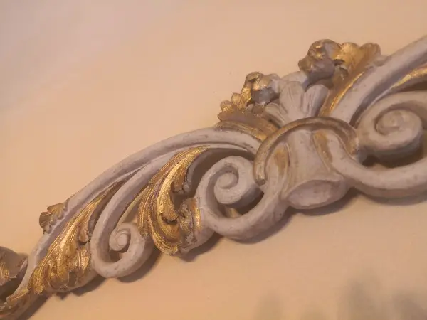 Wunderschoene, Sopraporta aus Florenz, handgearbeitet, Pappelholz, vergoldet und gekalkt, antikisiert, in sehr gutem Zustand, Masse: 1.54 x 30 cm Bogenhoehe, 1500.-plus Versand oder Abholung.