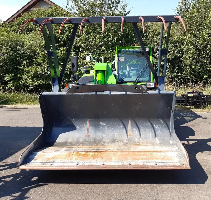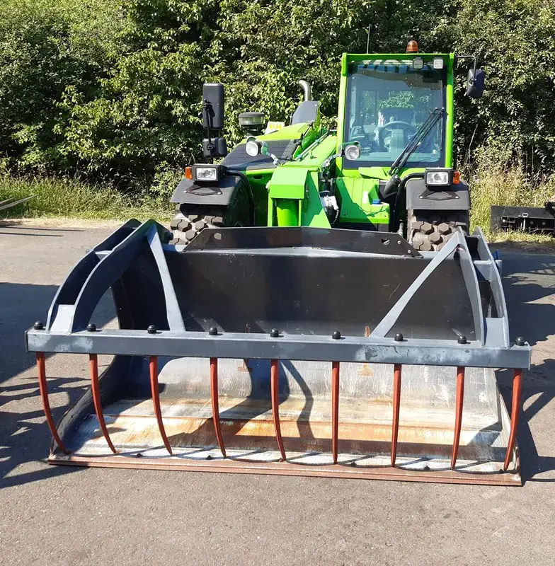 Merlo (TRE EMME) Demo Multi-Greif-Schaufel mit 2 Hydraulikzylindern zu Merlo, Breite 2.4m, sofort lieferbar. Viel Inhalt, sehr robust, auch als Volumenschaufel verwendbar. Zusätzlich geschraubte Verschleissschiene. Aufnahme ZM2 und ZM3/ZM3 Tri-Lock oder andere Systeme gegen Aufpreis möglich, für Mist, Kompost, Ballen- und Holzumschlag etc. Optional geschraubte Seitenbleche.