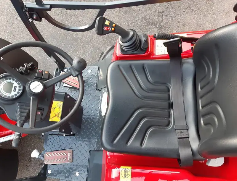 Schäffer 2630SLT, neu entwickelter 1.7l Kubota-Motor, kräftiges Drehmoment- Tiefdrehzahlmotor- 10% weniger Kraftstoffverbrauch und geringere Lärmbelastung. HD-plus Hydrostat mit neuer Hochdrucktechnik 510bar- höchste Effizienz, sehr agiles Fahrverhalten. HTF steht bei Schäffer für „High Traction Force“. Dabei handelt es sich um eine automatische Schubkraftregelung,