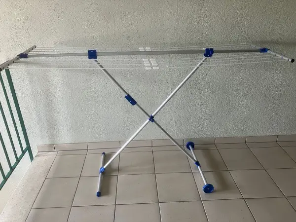 A) Wäschehänge, Wäscheständer Hänkeli, Wäsche trocknen, 2 ausklappbare Felder, zusammenklappbar, gut im Stand, gebraucht, wegen Nichtgebrauchs. B) Wäschehänge beiss-blau (Bild 2) , mit seitlich ausziehbaren Feldern. 1 Raste fehlt aber funktioniert trotzdem. Abholen in Liestal. Bei Interesse bitte um Natel- Nr. Dangge!