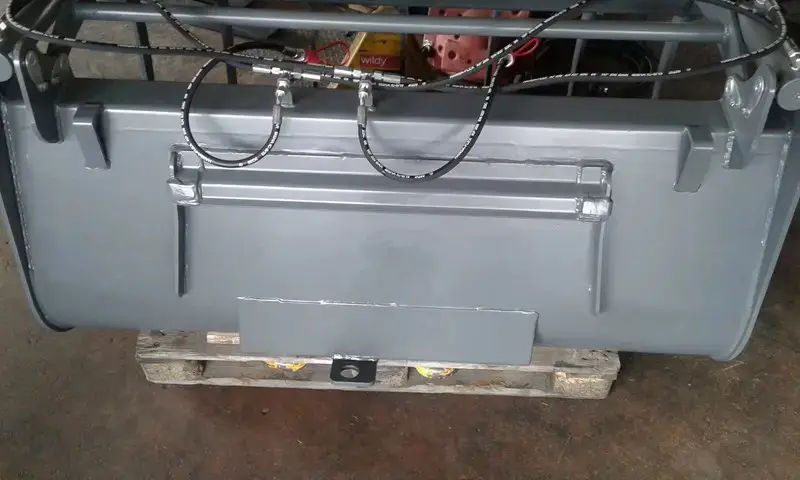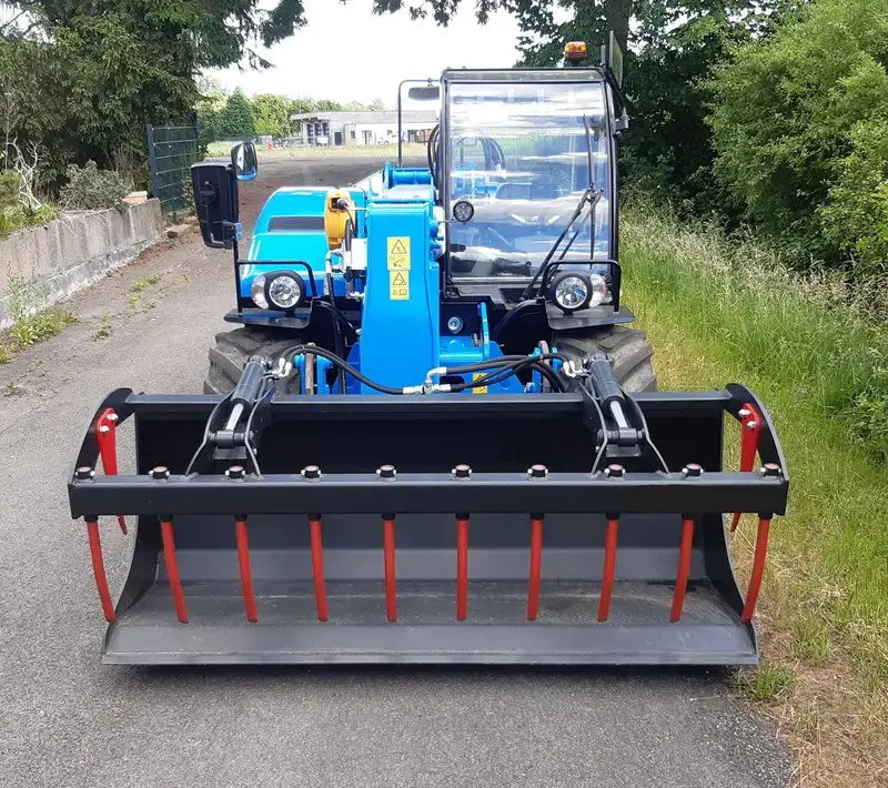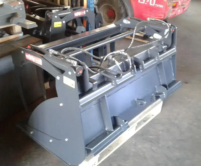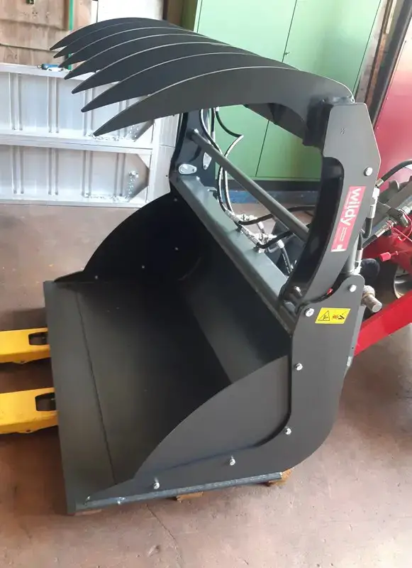 Multi-GreifSchaufel 1.0m-2.0m mit 2 Hydraulikzylinder, Geräteanbau Euro8- andere Systeme möglich, für Mist, Kompost, Ballen- und Holzumschlag etc. geschraubten Seitenbleche. Schürfmesser Hardox, Zinken aus Hardox oder Schmiedezinken geschraubt, bei geöffnetem Greifer kann mit der Schaufelkante/ Schürfmesser an eine