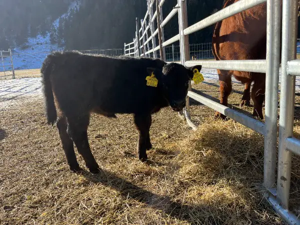 Sehr schönes Zuchtstierkalb Simba sucht ab Mai ein neues zu Hause. Wird sonst ende April/Mai gelegt. Er ist ein sehr nettes Wesen und Menschbezogen aufgewachsen. Vater: Eden PP schwarz, Mutter Sabine: P? rot.